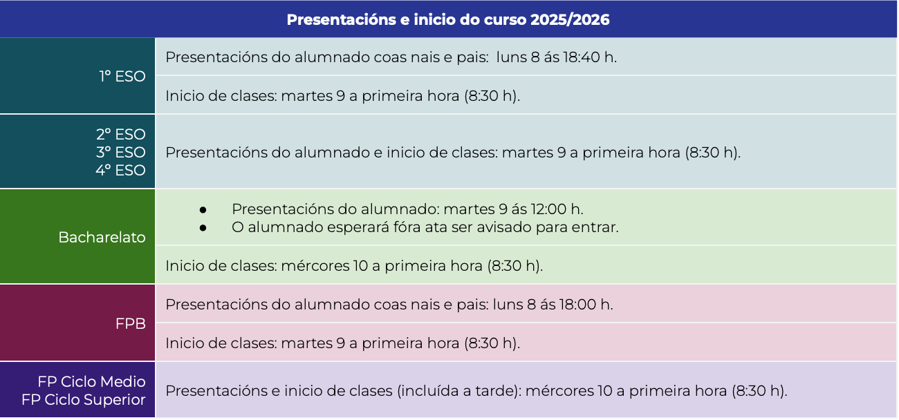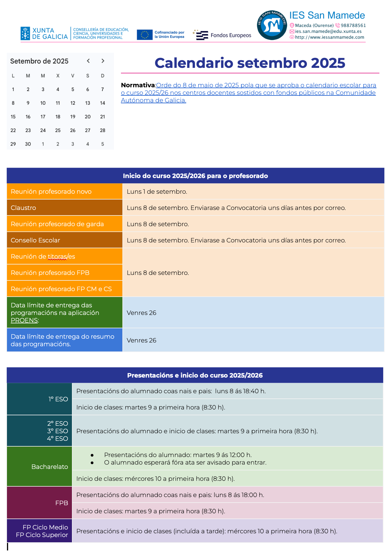 - Data límite de entrega de programacións mediante a aplicación proens: Venres 26 de setembro